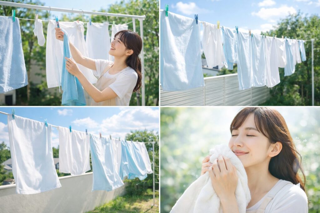 対策は「早く乾かす(風を当てる)」「洗いムラを減らす」が効果的。柔軟剤はその上で消臭寄りを選ぶと満足しやすいです。